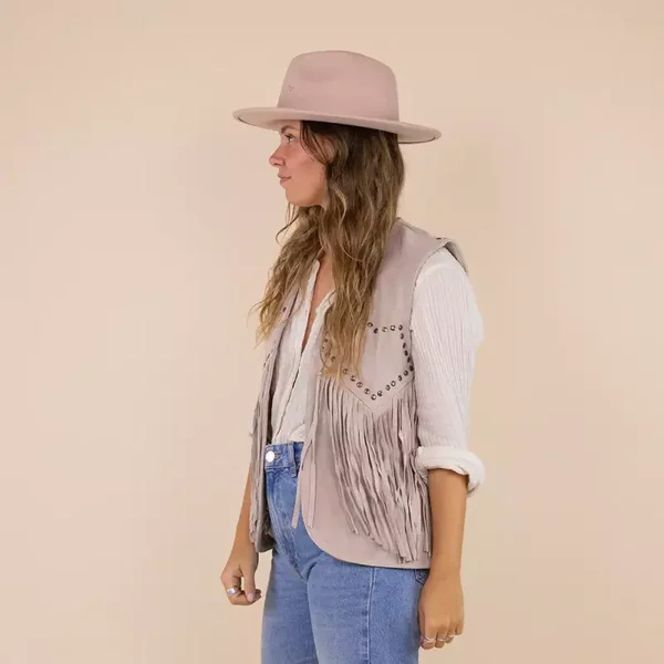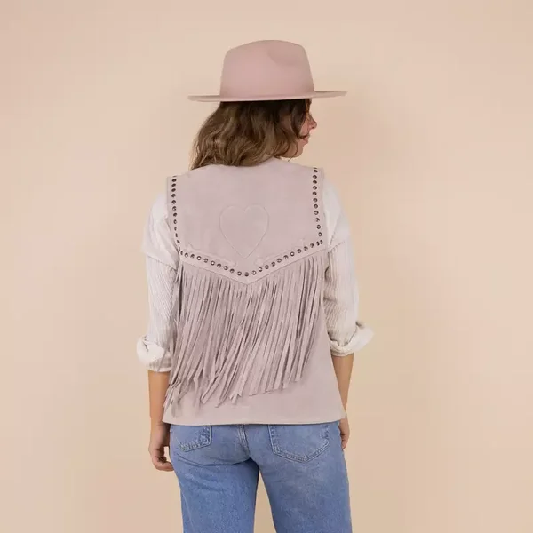 Gilet gemaakt van 100% suede.De binnenkant heeft een zijdezachte voering met het Moonrise logo. Het gilet is afgewerkt met studs en fringes.