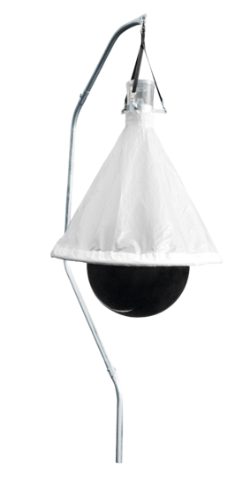De dazenval vangt dazen door de vrouwtjesdazen te misleiden. De zwarte bal wordt verwarmd door de zon enbeweegt lichtjes heen en weer in de wind.